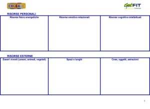 E siamo in grado di riconoscere anche tutte le risorse esterne a noi, di cui disponiamo nel qui e ora? Dagli esseri viventi, umani, animali e vegetali, agli spazi e luoghi, alle cose e astrazioni, come oggetti grandi e piccoli, interessi, passioni: quanto riusciamo a trasformare in energia e in risorsa le nostre relazioni con gli ambienti in cui siamo immersi?